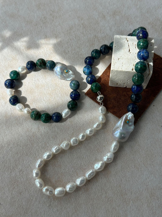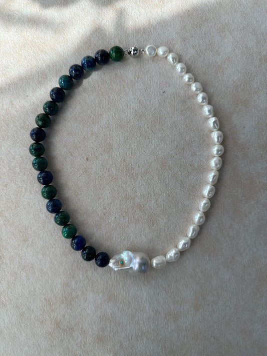 (A260325801)綠松石天然白珍珠撞色鏈