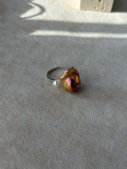 (A260408794)彩色巴洛克雙珠戒指