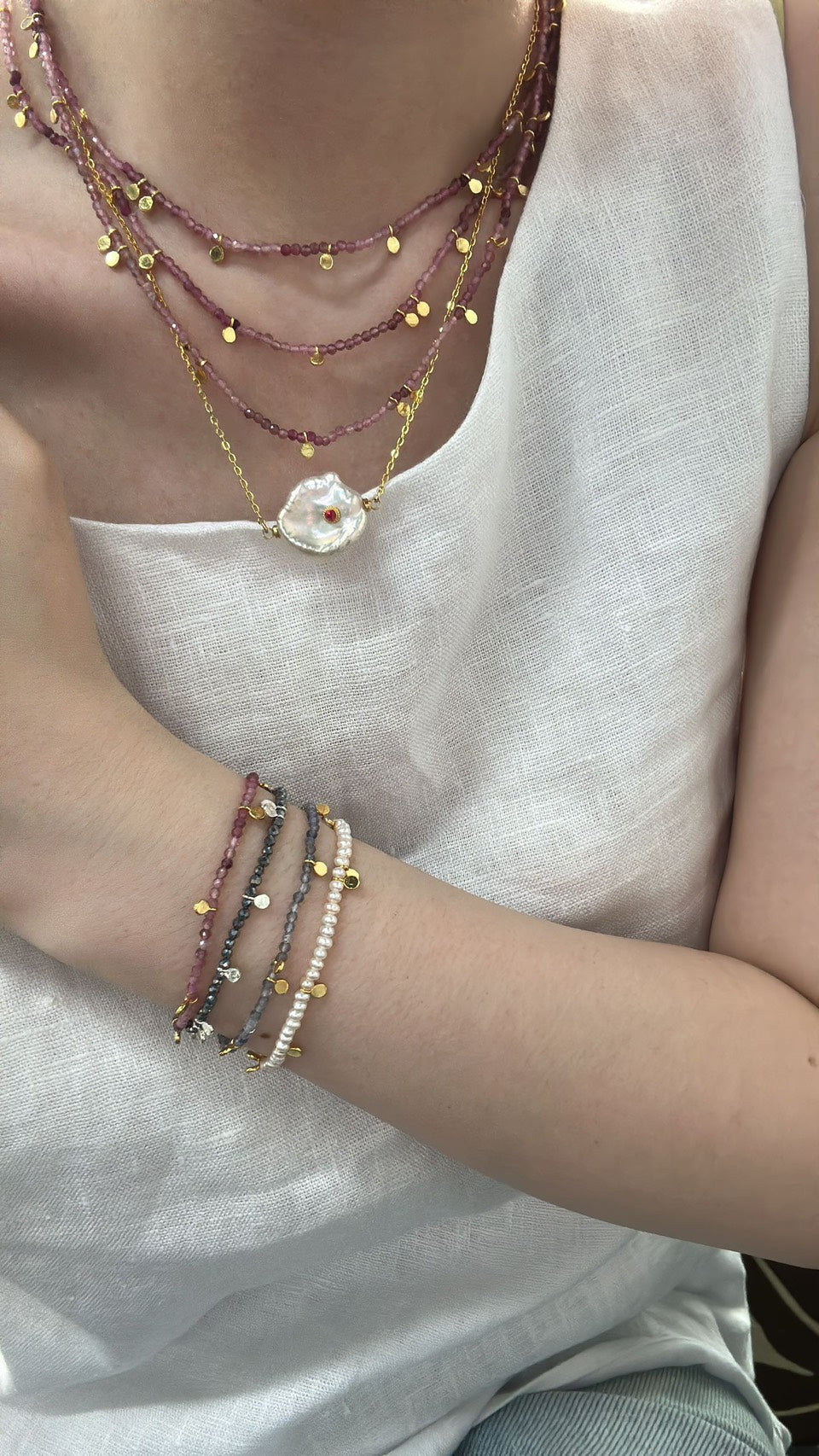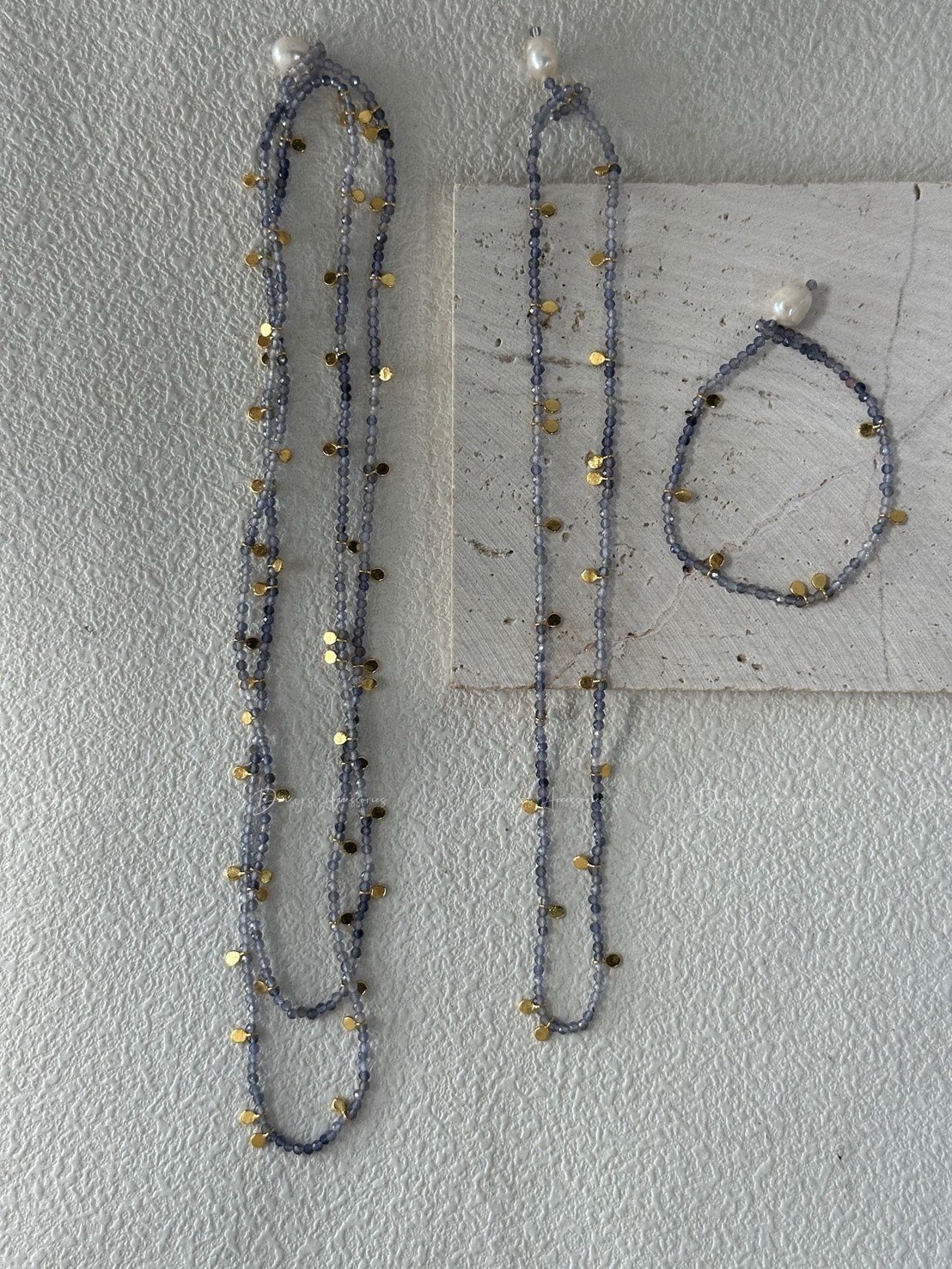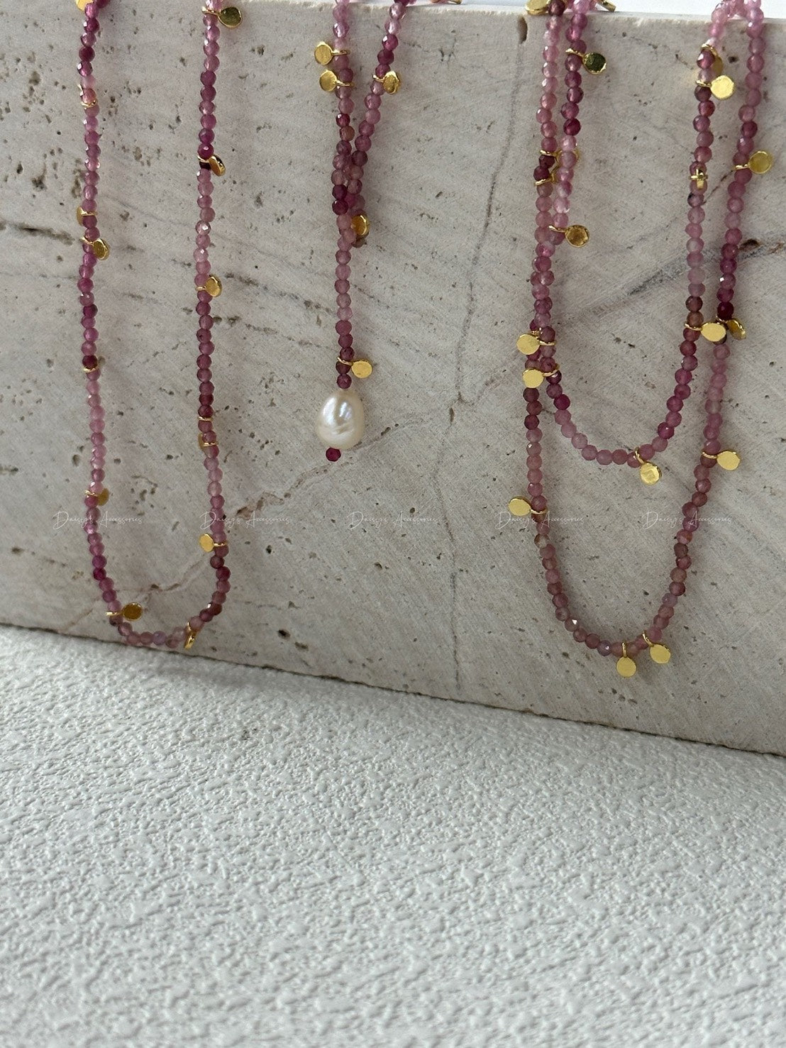 藍青色 粉色碧璽 珍珠